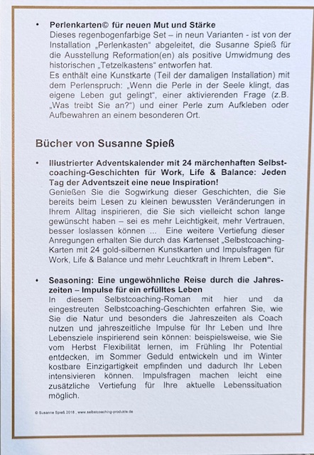 Im Folgenden ein Überblick über meine Selbstcoaching-Produkte - mögen Sie Ihnen Freude und Inspiration bringen!